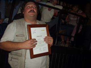 Потом Дмитрий Бак, ставший уже заместителем ректора РГГУ, вручил Диме с опозданием на полгода «Студенческий Букер» за предыдущий роман «Эвакуатор». Получая диплом, Дима сказал, что если до него дойдет еще и обещанная некогда награда и денежное выражение «Национального бестселлера», то он, наконец-то сможет отдать ее на строительство памятника Пастернаку в Москве. А вообще-то сейчас у него одно желание, - «кушать!»