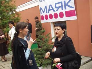 Рассказывала, как только что приехала из Чечни, где снималась в фильме Александра Сокурова про то, как простая русская женщина поехала туда к своему сыну-офицеру. Сначала она удивилась предложению Сокурова, сказав, что пусть он возьмет снимать Мордюкову. Но режиссер сказал: «мы должны это сделать для России», и Вишневская согласилась. Жила в закрытом поселке ФСБ. На съемки возили под охраной автоматчиков, в город, естественно, не отпустили ни разу. Жила в специальном жилом модуле 3х6 метров. В таких живут и офицеры, но по шесть человек. Служат уже три года, если не больше. Солдаты – в палатках по 30 человек. Как она сказала, «при нас убили Басаева». Однажды слезала с БТРа, что произвело на нее впечатление. Поскольку, кроме фильма, снимали фильм о фильме, то ей интересно, как выглядело ее «слезание».