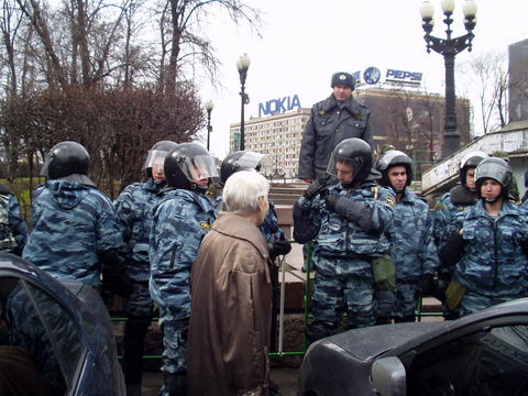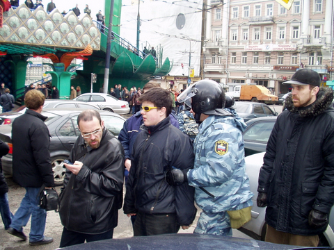 Конторский в штатском ОМОНа раз в пять больше, чем собравшихся. Причем, основные силы, как потом оказалось, были на углу Пушкинской и Тверской. Там схватили Каспарова. Там же схватили Касьянова, но его отбили.