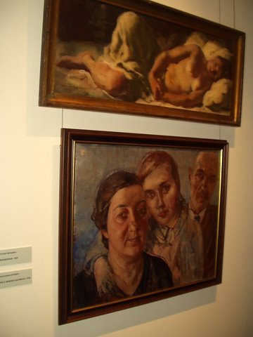 Пейзаж на двоих - губернатор Филипенко и министр Соколов А, в общем, как увидишь автопортрет Петрова-Водкина с женой и дочерью или автопортрет Серебряковой, или лентуловский портрет Аполлона, сына художника, да и много чего другого увидишь, и хорошо на сердце сразу. Особенно, как после пресс-конференции оказались в буфете до основного открытия, где шампанское Абрау-Дюрсо очень хорошее, так только потом вспомнил, что, кажется, до третьего этажа так и не добрался.