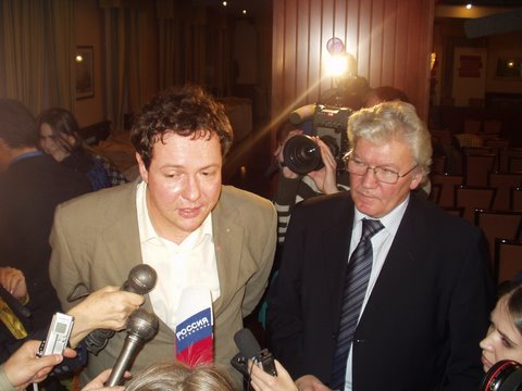 Иличевский и Пастернак в окружении репортеров Вызванный к микрофону Асар Эппель, пытаясь уменьшить шквал критики, которую вызвало бы любое решение, предварил свое объявление странным признанием, что жюри выбирало лауреата из двух претендентов – Юрия Малецкого с «Концом иглы» и Александра Иличевского с «Матиссом».