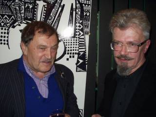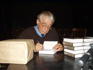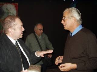 Потихоньку все перешли в соседний зал выпивать и закусывать за большим столом. Тут подошел и Василий Аксенов, который уже побывал на премии «Дебют», приглашенный туда Евгением Поповым. Сюда же он приехал как автор изящного предисловия. Они стояли вдвоем с Лимоновым, держа по бокалу с красным вином и разговаривая. Потом Лимонов попрощался и ушел. Аксенов рассказал, что закончил у себя в Биаррице новый роман, который сейчас привез в Москву и опубликует в первых двух номерах журнала «Октябрь» будущего года. В Биаррице очень хорошо, когда есть работа. А когда роман был закончен, то Биарриц оказался малюсеньким городком, очень изящным, удобным, красивым, в котором, кажется, вовсе нет людей. И Аксенова потянуло в Москву, где он пробыл уже месяц, и теперь его потянуло обратно. С 15 января он еще должен прочитать последний семестр в университете в Вашингтоне. Я попросил разрешения его сфотографировать. «Не надо, - махнул он рукой, - лучше пришлите фотографию, где сделали сейчас меня с «троцким».